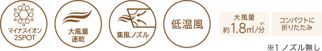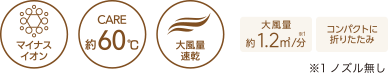 2カ所からたっぷりのマイナスイオンが発生し、髪を包みます。