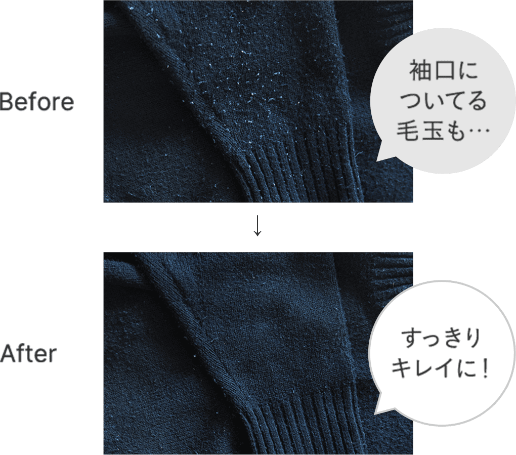生地のやわらかさや肌ざわりはそのままに毛玉だけをしっかりカット。