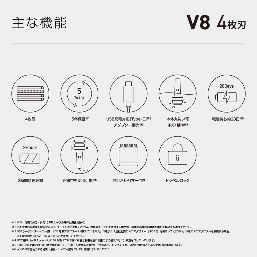 ※2 本体、付属の外刃、内刃(USB ケーブルなどの付属品を除く)
